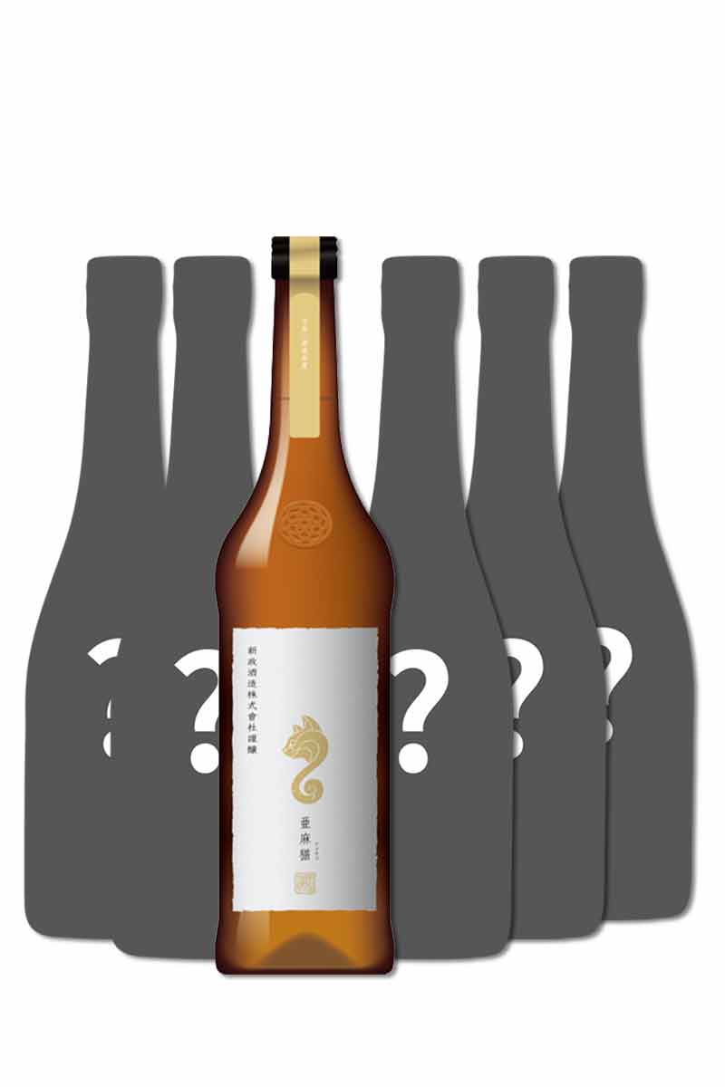 盲盒內含六瓶日本清酒,並且保證其中一瓶為「新政酒造 亞麻貓 純米酒 720ml」。